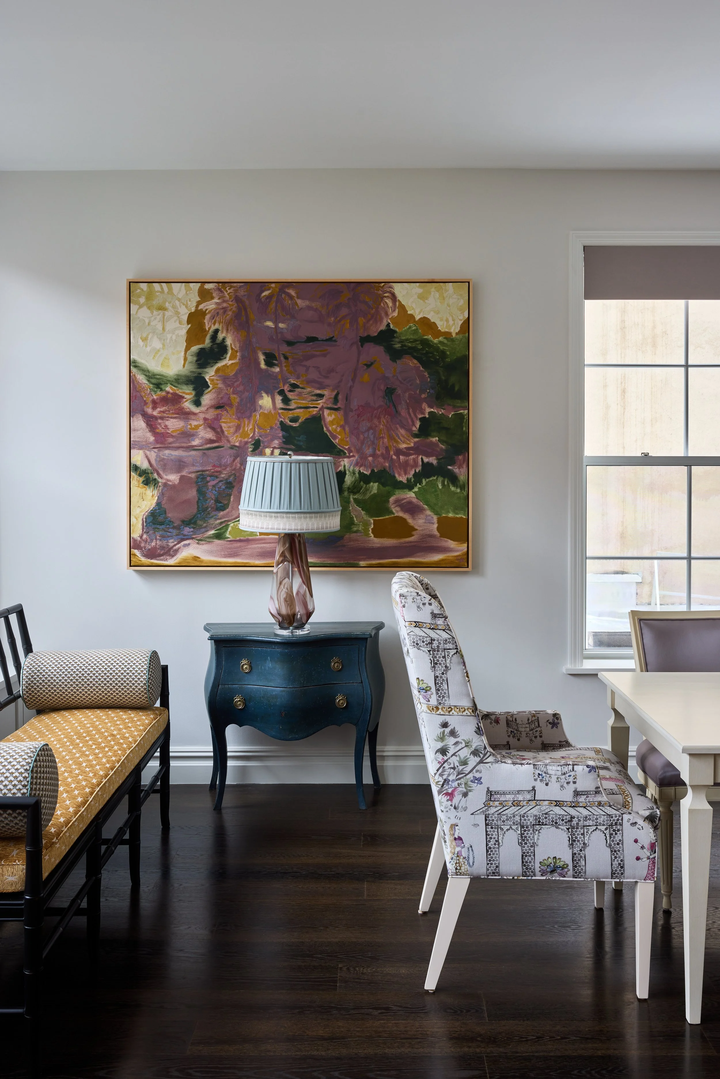 A sprawling Soho loft serves as a vibrant sanctuary for a family of four with a passion for entertaining. The design journey began with a single eggplant Le Creuset, sparking a palette of deep jewel tones throughout the residence. By blending curated London antiques with the client’s personal art collection, we created a space that is sophisticated, maximalist, and—above all—deeply lived-in.